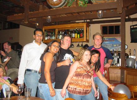 Professor Dan surrounded by his daughter Becky, Sheri, students and hearty partiers!!